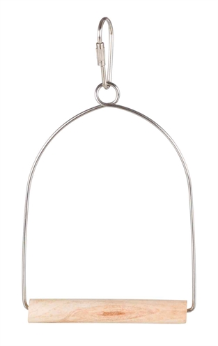 De Trixie Schommel Hout van 8 x 15 cm voor vogels is een boogschommel voor in de kooi en volière, met een rvs boog en houten stok. De houten zitstok is prettig voor de pootjes en helpt de nagels af te slijten. Met de handige haak kan de schommel gemakkelijk in de kooi opgehangen worden. De haak heeft een draaisluiting en is dus niet zomaar door de vogel los te maken. De stok is gemaakt van natuurlijk FSC-hout, met schors.